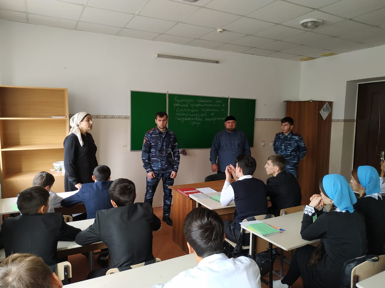 27.09.2019Во исполнения протокола поручений Главы Чеченской Республики Р.А.Кадырова (совещание от 26 июня 2015года № 01-29),в рамках исполнения плана мероприятий по профилактике терроризма и экстремизма МБОУ «Шуанинская СШ», 27.09.2019года состоялась встреча участкового уполномоченного полиции ОУУП и ПДН, младшего лейтенанта полиции Истамалова Амхада Ахмедовича и инспектора ПДН и младшего лейтенанта полиции Байсултанова М-К.А. ОМВД России по Гудермесскому району ЧР со школьниками по вопросам профилактики экстремизма и терроризма, антитеррористической безопасности, противодействия идеологии экстремизма и терроризма.