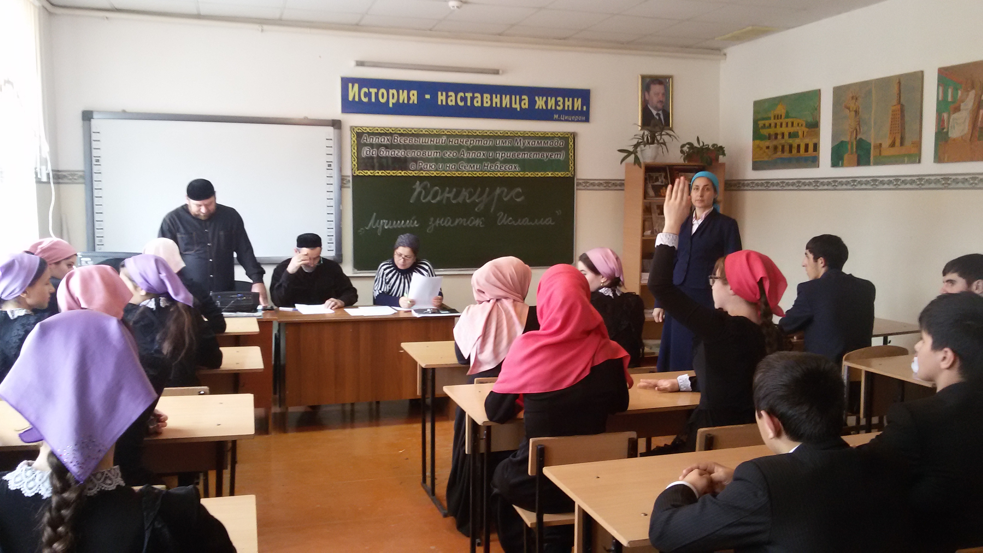 22.12.201522.12. организатором -педагогом по ДНВ и Р Нажаевым Ш.Ш. организованно, на высоком уровне конкурс «Лучший знаток семейного Паспорта Мухаммада (с.а.в.)» в котором приняли участие 28 человек из 8-11 классов и присутствовали имам с.Шуани- Испайханов Сурхо , руководитель школы –Магамедова А.А.,заместиель директора по воспитательной работе Юсупова Н.Д.