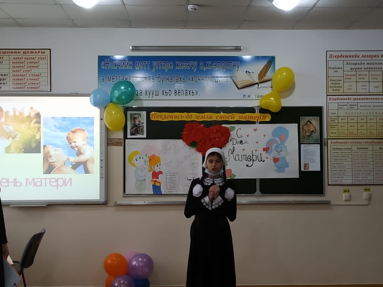 25ноября 2020 года, общешкольное мероприятие «Поклонись до земли своей матери» с приветственного слова начала заместитель директора по воспитательной работе Юсупова Н.Д. На празднике звучали замечательные стихи С. Есенина, Э. Асадова, М. Цветаевой, И. Бунина и А. Барто. Участники встречи вспоминали пословицы и поговорки о матерях, делились смешными случаями из жизни своих детей. Весело и задорно прошла игра:«Шуточное предсказание».Также все присутствующие с удовольствием отвечали на вопросы викторины.