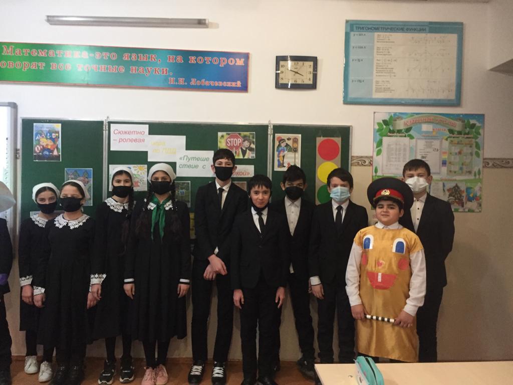 21.01.2021Во исполнения письма заместителя министра образования и науки Чеченской Республики А.Р.Усманова от 12.01.2021года, № 10,07-43, в МБОУ «Шуанинская СШ» с 19-21.01.2021 в 1-8 кл. прошли внеклассные мероприятия по профилактике по профилактике детского дорожно-транспортного травматизма: викторина «Умный пешеход» (8бкл. Орг. Лидер ЮИД -Тойсумова М.И., сюжетно- ролевая игра «Путешествие Незнайки» (6-7кл., Орг. Курбанова З.Р.); чтение художественной литературы С.Маршак «Милиционер» (1-е кл., Орг. Гадалашева Д.Г.) с целью закрепления знаний детей о правилах дорожного движения. Количество принявших участие учащихся 54 человек.