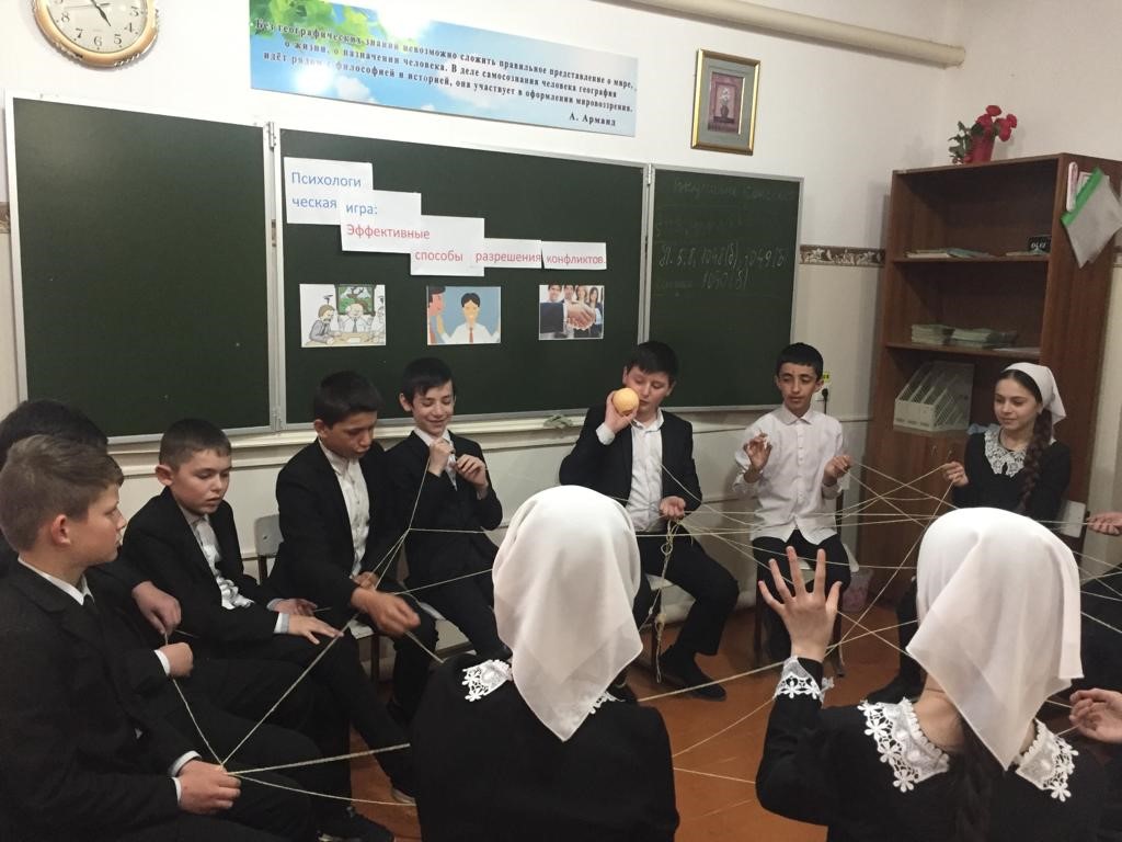 18 апреля С целью содействия в осознании обучающимися своего поведения в конфликте, формирования умения позитивно разрешать конфликт, в 6-7 классах, была проведена игра с элементами тренинга «Эффективные способы разрешения конфликтов».