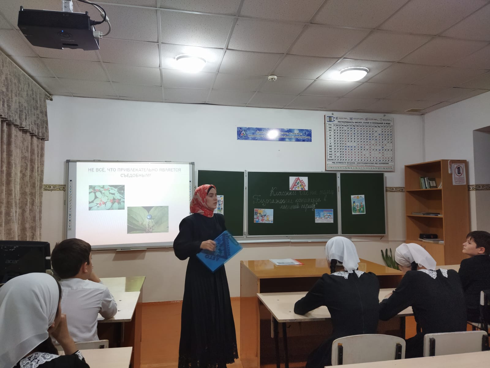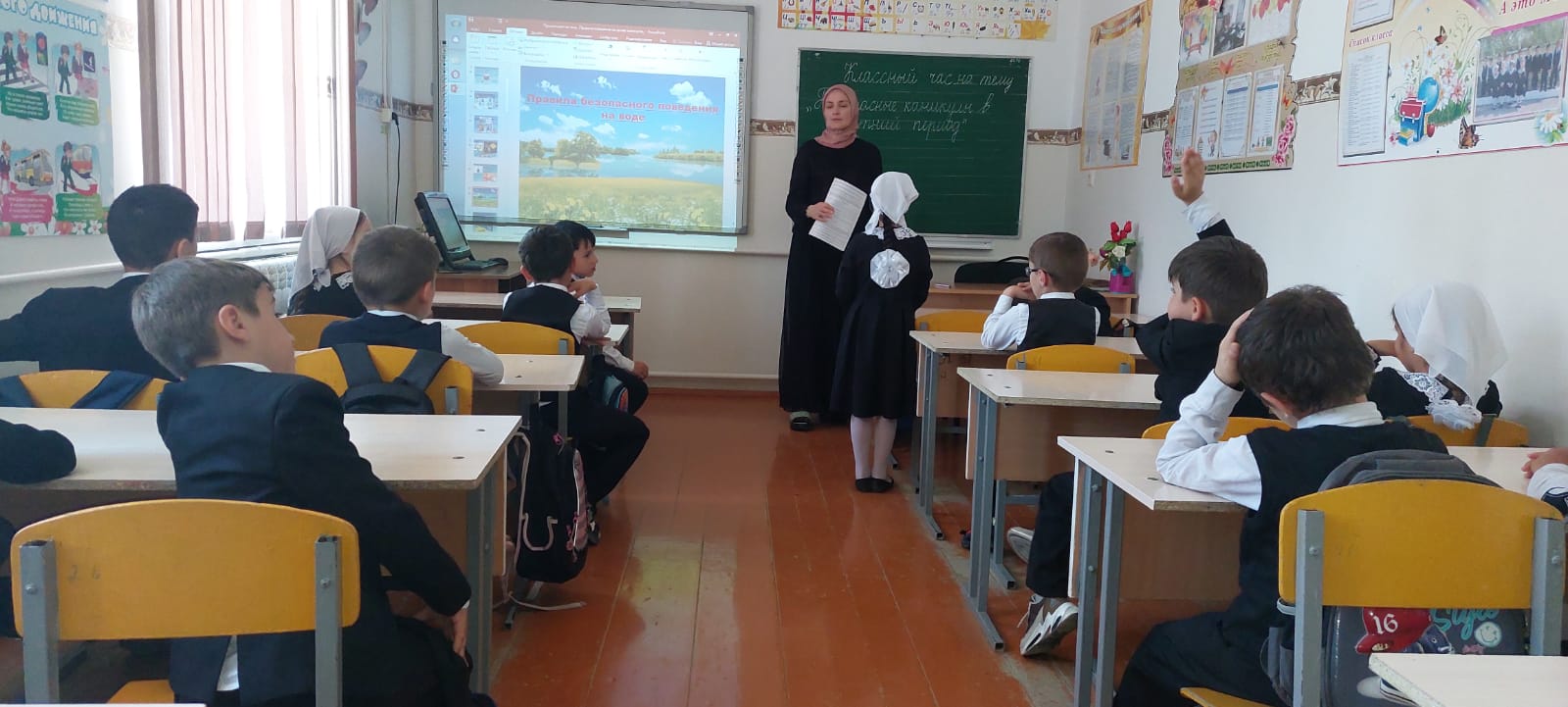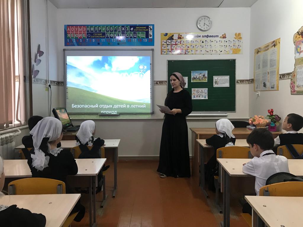 Во время открытого урока преподаватель ОБЖ Кармирзаев Л-А. и классные руководители 1-11 классов актуализировали знания обучающихся о правилах безопасности на воде, на природе, на дороге во время весенних праздничных дней и летних каникул.