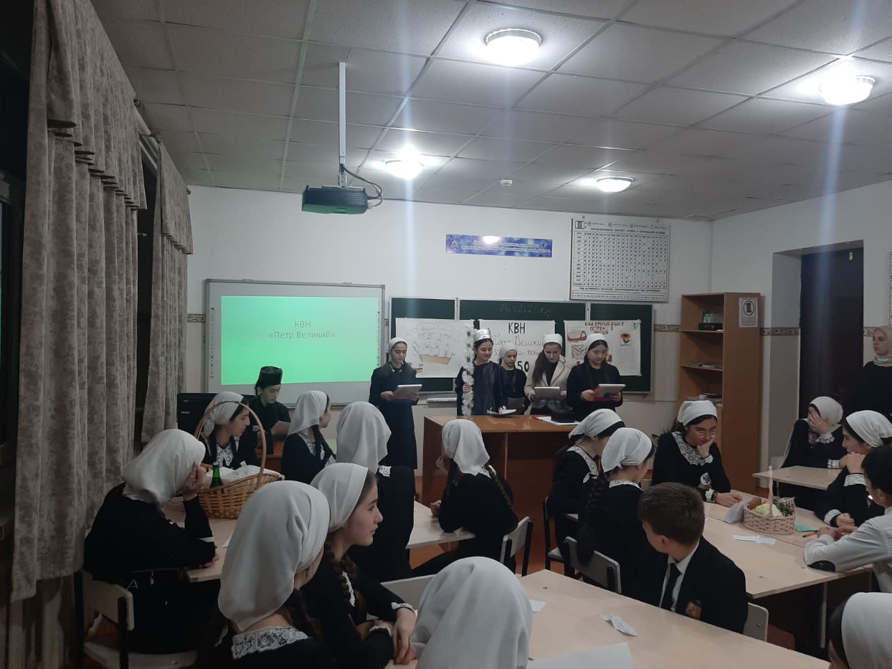 Ребята 1-11 классов приняли участие в следующих мероприятиях: КВН, Своя игра, Брейн-ринг «Петр 1 и его время», игра в формате турнира "Крестики-нолики", Познавательная игра "В гости к Петру!".
