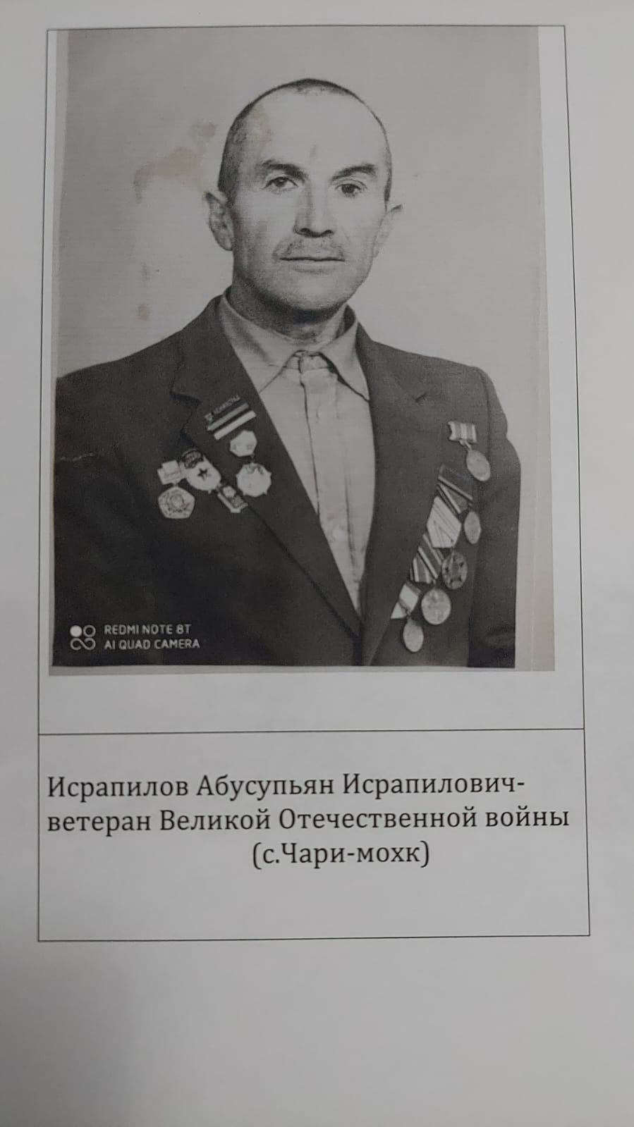 Учащиеся 11 класса Курбановы: Джамиля и Хадижа и учащиеся держали в руках портреты своих родственников, ветеранов, тружеников тыла, детей войны, рассказывали о их боевых путях. Минутой молчания почтили память всех, кто на плечах своих вынес ужасы войны и приблизил День Победы. 9 мая навсегда останется самым светлым и большим в каждой семье всех поколений, отменить который не сможет время.
