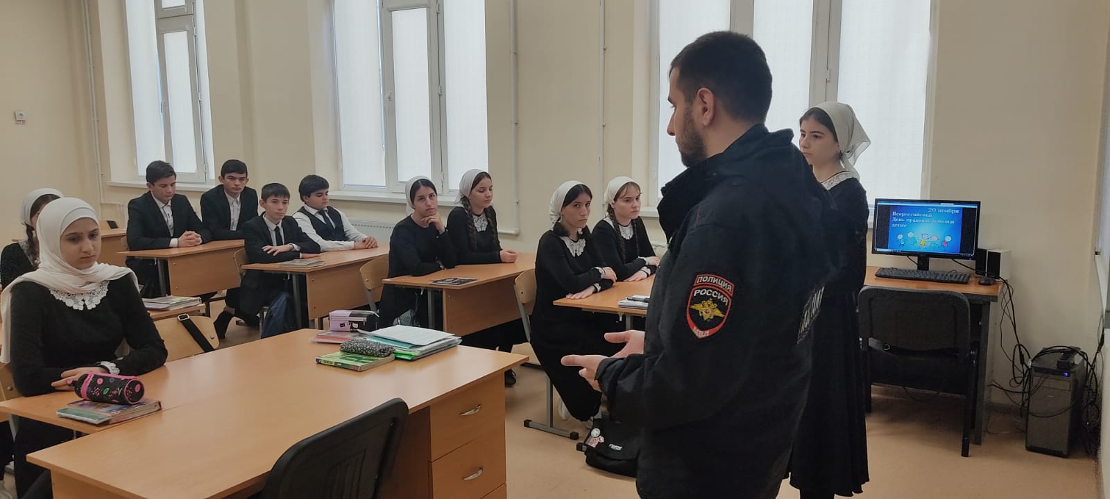 На встрече были рассмотрены вопросы, связанные с правопорядком и защитой прав граждан. Амхад Ахмадович, сотрудник правоохранительных органов рассказал старшеклассникам об уголовной и административной ответственности несовершеннолетних, объяснили, какие правонарушения могут привести к привлечению к уголовной или административной ответственности, а именно за нарушений правил дорожного движения.