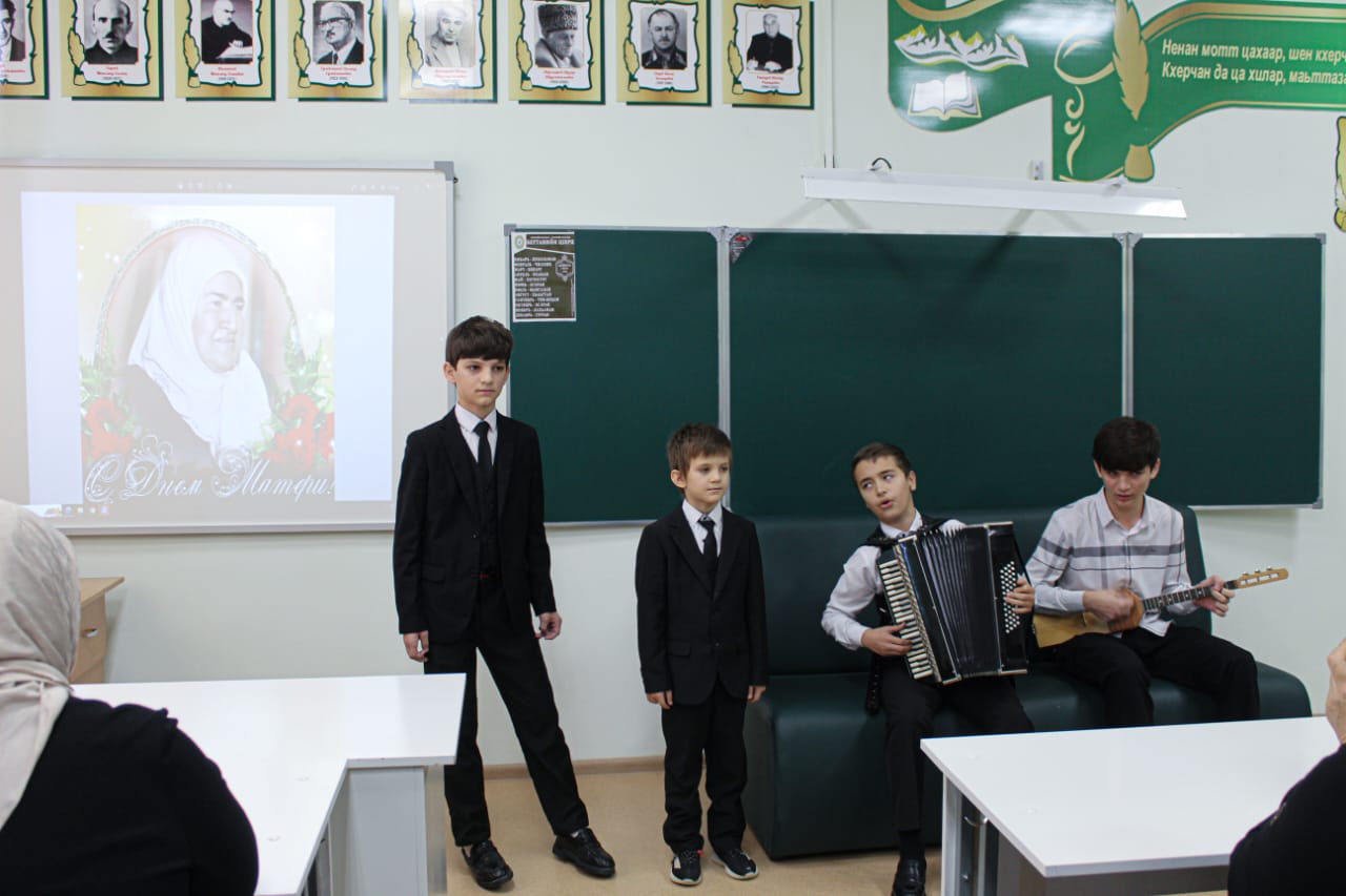 Инжила: «Литературно-музыкальная композиция «Мы вечно будем прославлять , ту женщину чье имя –Мать!» , которая прошла в школе , имеет очень важную цель - формирование любви и уважения к матерям. Во многих культурах мать считается особенным символом любви, отношений и заботы, и это олицетворяет ее роль в жизни каждого человека. Композиция не только прославляет женщину, чье имя - "мать", но и позволяет каждому участнику испытать особенные чувства и признательность к своим матерям. Мы надеемся, что данное мероприятие помогло привлечь внимание к этой важной теме и вдохновило молодое поколение на выражение любви и уважения к своим матерям не только в этот день, но и каждый день.
