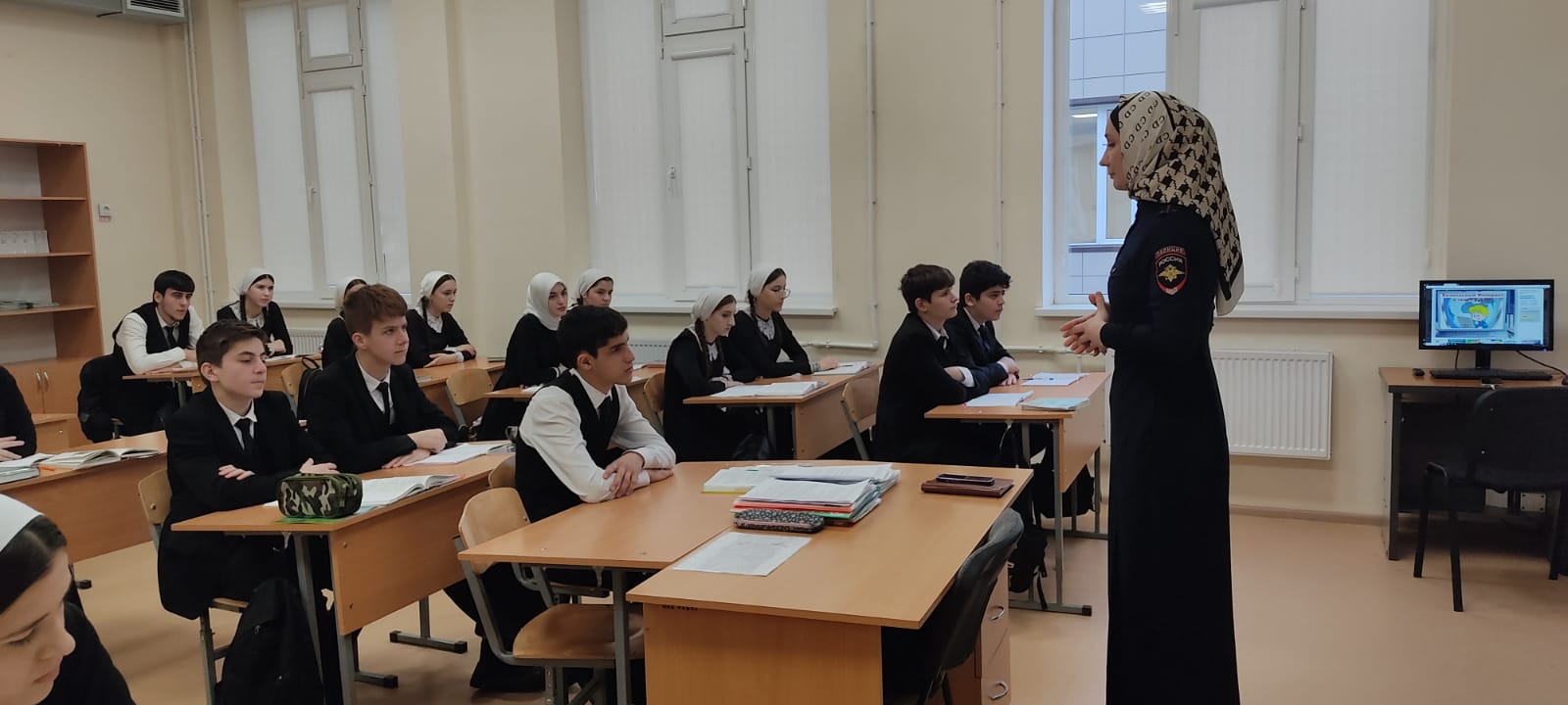 На встрече с инспектором ПДН Седой Ибрагимовой учащиеся обсудили важность соблюдения правил поведения в школе, предотвращение конфликтов и нарушений, а также обеспечение безопасности в интернете. Были рассмотрены различные ситуации, когда учащиеся могут столкнуться с правонарушениями, и как правильно реагировать в таких случаях. Инспектор также подчеркнула важность доверительных отношений между учащимися и педагогическими работниками для своевременного выявления и решения проблем. Ребята поблагодарили за полезную информацию инспектора ПДН, Седу Ибрагимовну.