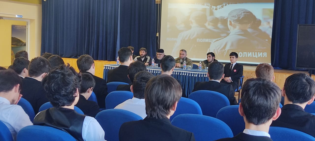 28.02.2024В рамках реализации федерального проекта «Современная школа» национального проекта «Образование» 28 февраля 2024г.в МБОУ «Шуанинская СШ» прошла встреча старшеклассников с сотрудниками Росгвардии, Ислангериевым С. М., заместитель командира роты ОМОН АХМАТ -1 , который провел агитационную работу с учащимися 9-11 классов по правилам приема в военные образовательные организации ВУЗов Росгвардии.