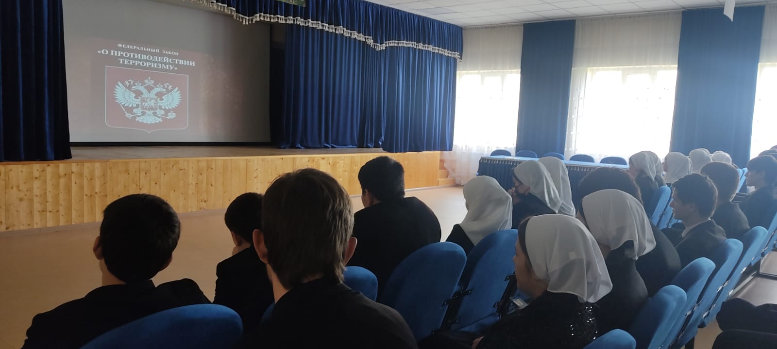 15.04.202415 апреля 2024г. Юсупова Н.Д., провела мероприятие «Знакомство с положением РФ по вопросам в борьбе с терроризмом и ответственностью за преступления террористической направленности» для учащихся 9-11классов в рамках реализации плана по антитеррористической защищенности.