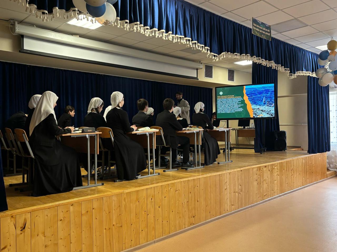 Урок прошел в формате интерактивного представления, где обучающиеся и зрители не только узнали о географическом положении Урала, но и погрузились в его природные, исторические и культурные особенности. Учитель географии Межидов Рустам Адамович и обучающиеся 9 класса - рассказали о том, как Уральские горы протянулись с севера на юг на более чем 2000 километров, разделяя две части света и влияя на климат и природу окружающих территорий . Участники узнали, что Урал - это не только горы, но и обширные равнины, реки, озера и богатые природные ресурсы.