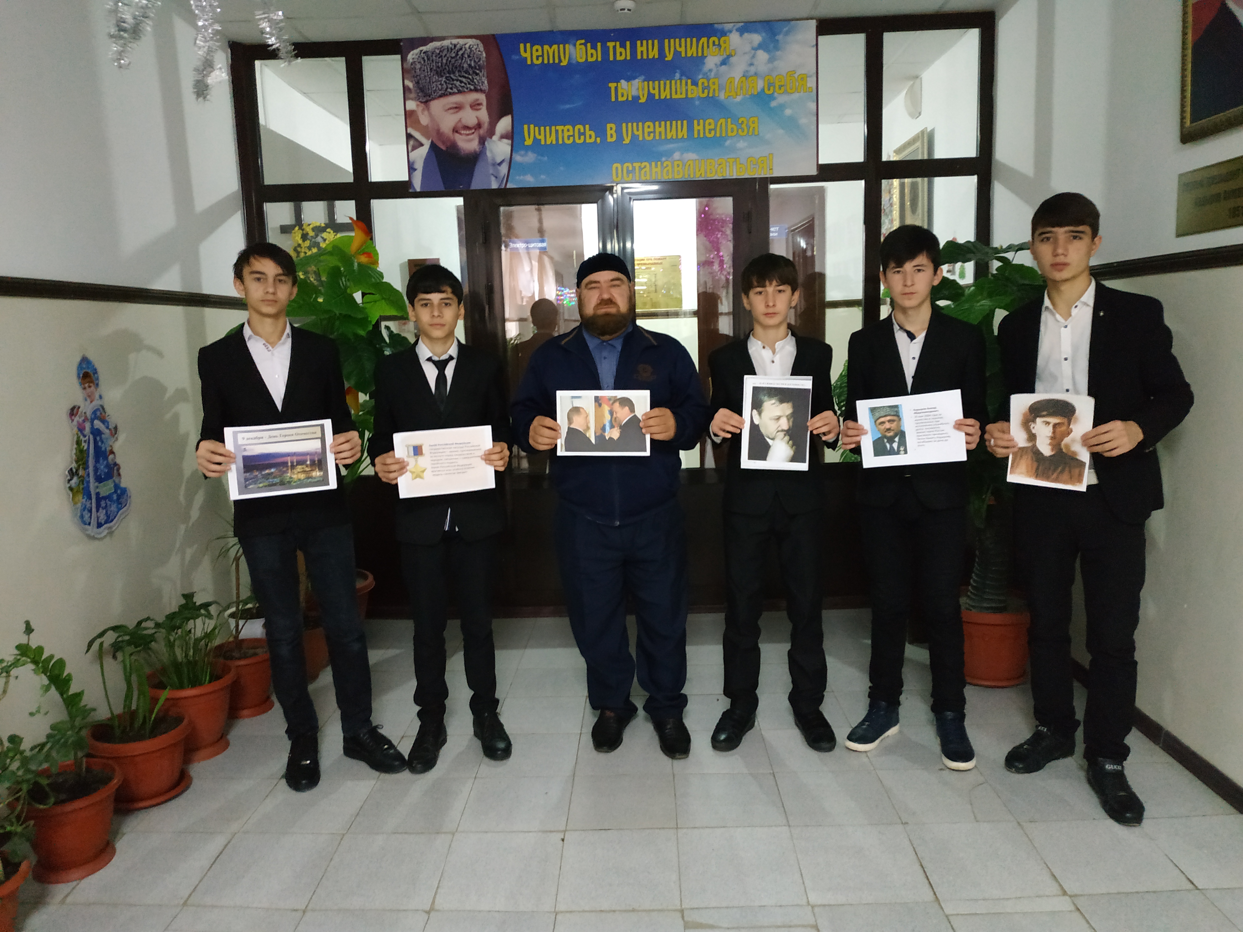 07.12.2018В соответствии с планом УО управления образования Гудермесского района, приказом руководителя школы с 7-9.12.2018 г. в 1-11 классах состоялись мероприятия, посвященные Дню героев Отечества, в целях патриотического воспитания подрастающего поколения, укрепления духовных ценностей, развития интереса к истории России, Чечни сохранения памяти о героическом прошлом своей Родины.
