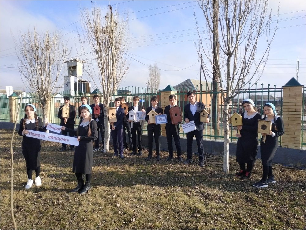 Учителя и учащиеся, совместно с родителями изготовили кормушки из различного материала. Вместе с заместителем директора по воспитательной работе Юсуповой Н.Д., ребята развесили вокруг школы свои кормушки и насыпали зерно. В ходе мероприятия было вывешено 25 кормушек.