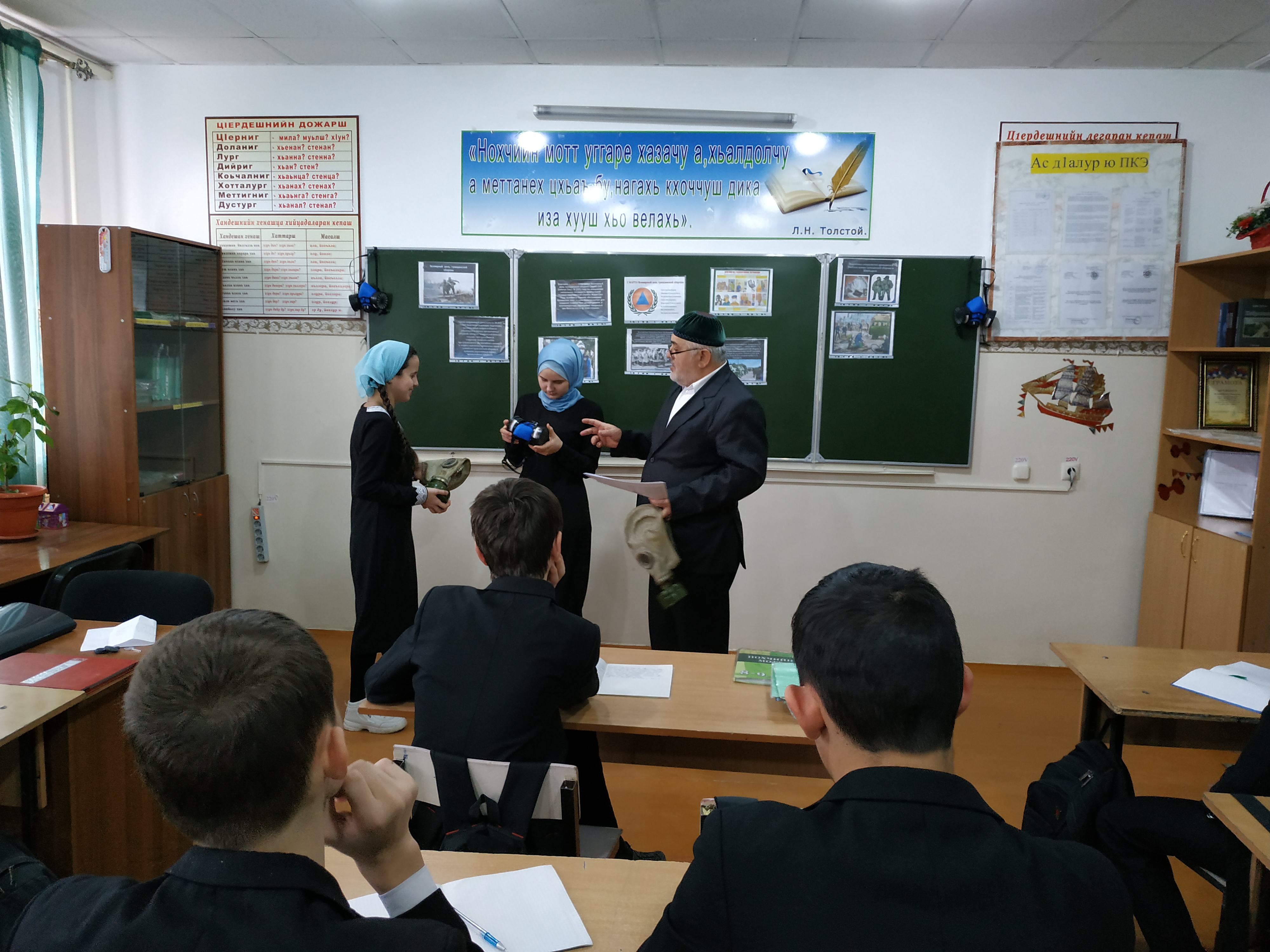 В 6 «б» классе состоялась встреча с представителем службы гражданской обороны - Юсуповым Раджапом Умархажиевичем. Он наглядно продемонстрировал некоторые методы оказания первой медицинской помощи пострадавшим при ЧС.